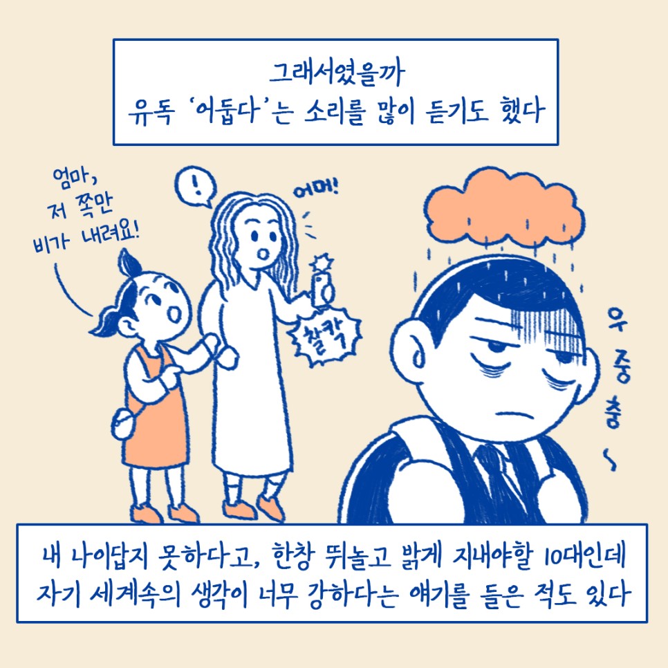 내 나이답지 못하다고, 한창 뛰놀고 밝게 지내야 할 10대인데