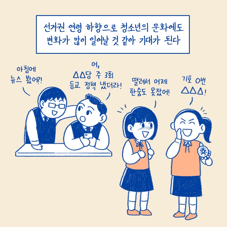 선거법 연령 하향으로 청소년의 문화에도 변화가 많이 일어날 것 같아 기대된다.