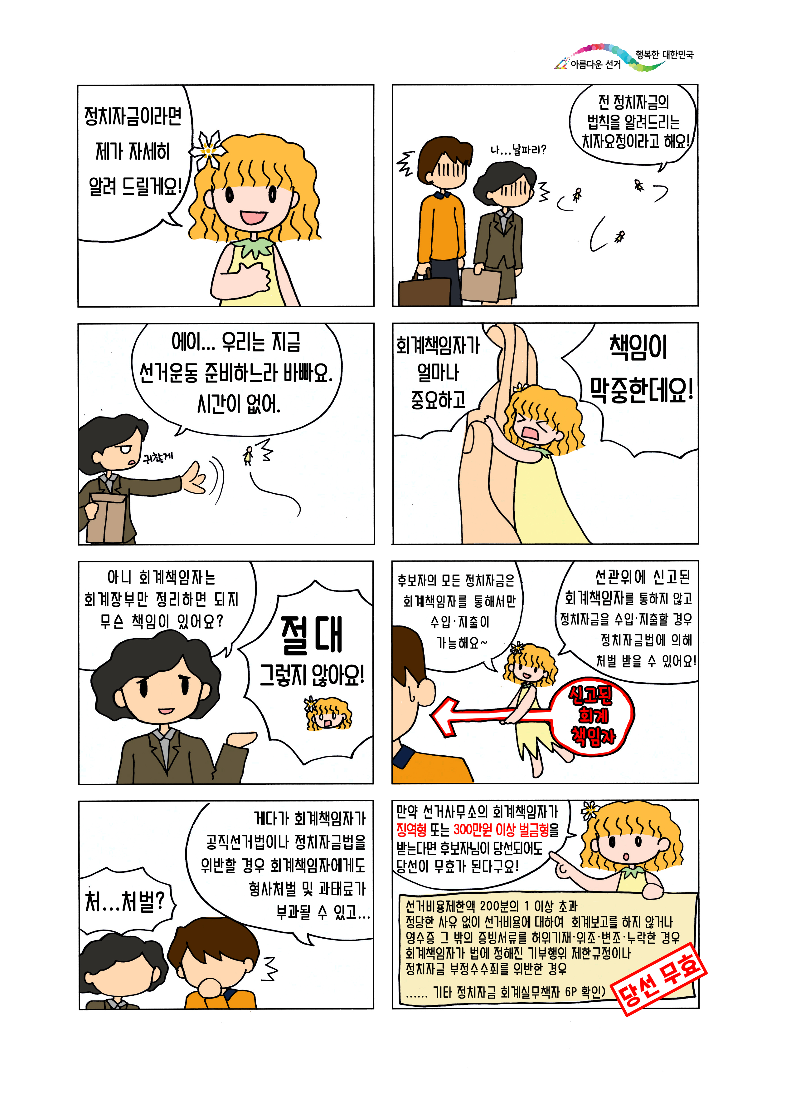 회:후보님, 전 정치자금에 대해 아무것도 모르는데 회계책임자를 해도 괜찮을까요?
