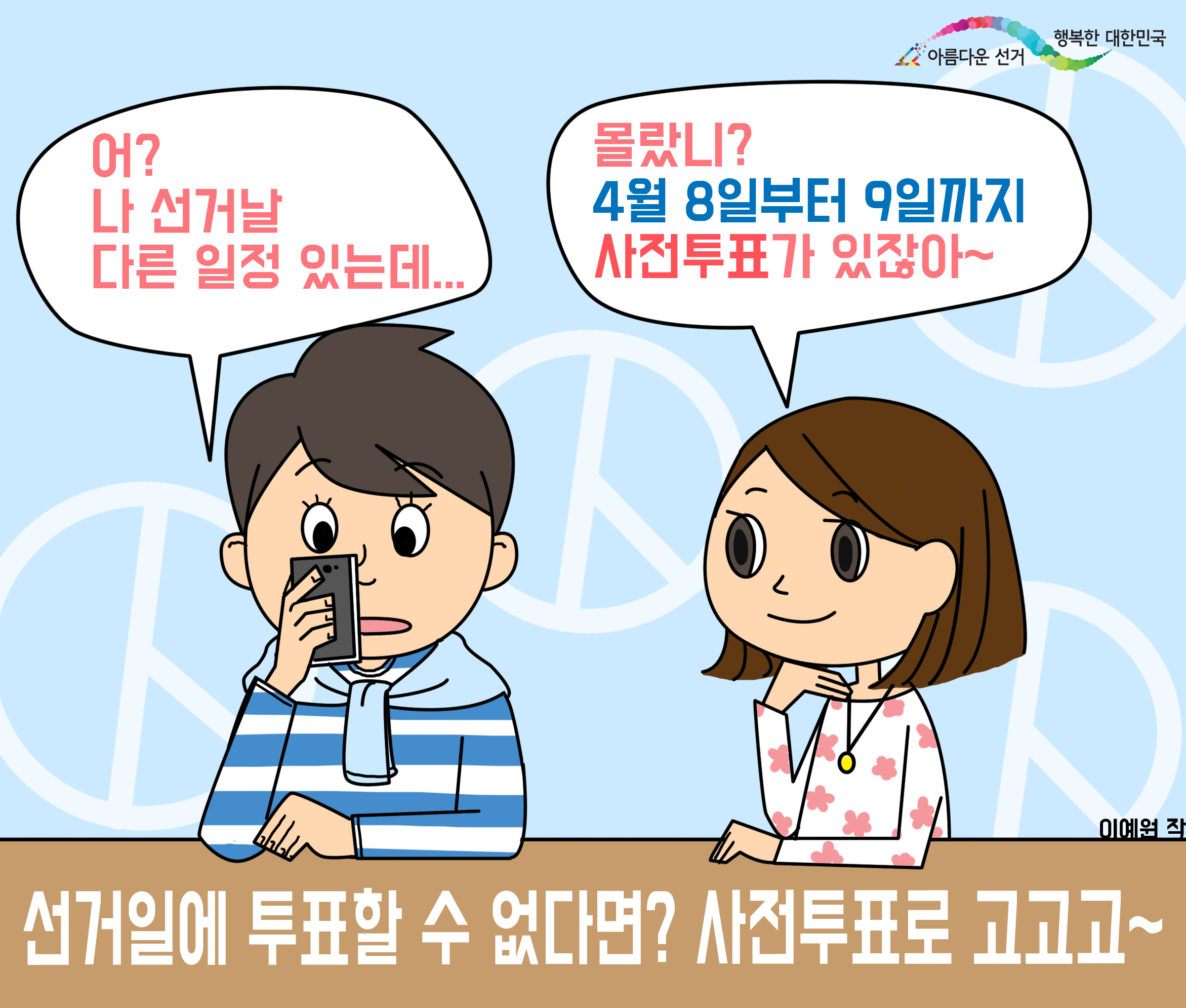 여 : 몰랐니? 4월 8월부터 9일까지 사전투표가 있잖아~