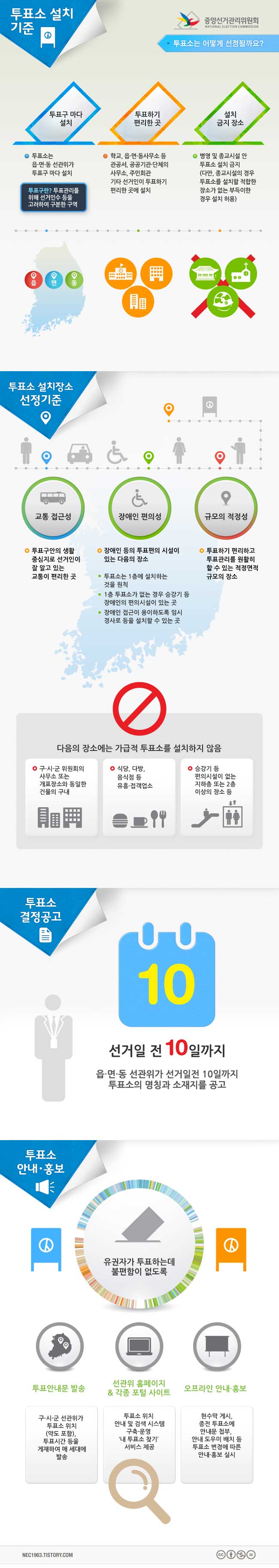 :학교, 읍.면.동사무소 등 관공서, 공공기관.단체의 사무소, 주민회관 기타 선거인이 투표하기 편리한 곳에 설치