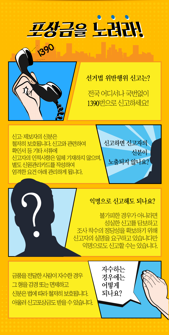 선거법 위반행위 신고는? - 전국 어디서나 국번없이 1390번으로 신고하세요!