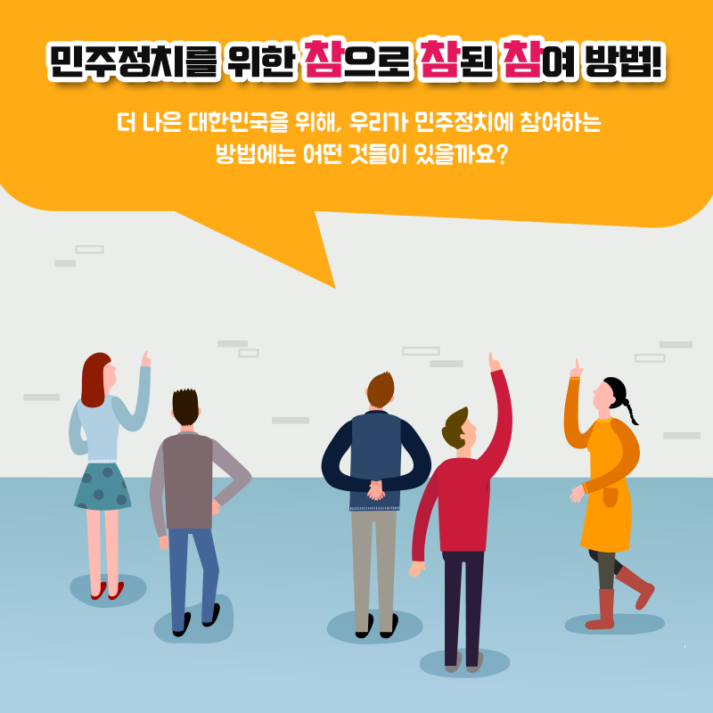 더 나은 대한민국을 위해, 우리가 민주정치에 참여하는 방법에는 어떤 것들이 잇을까요?