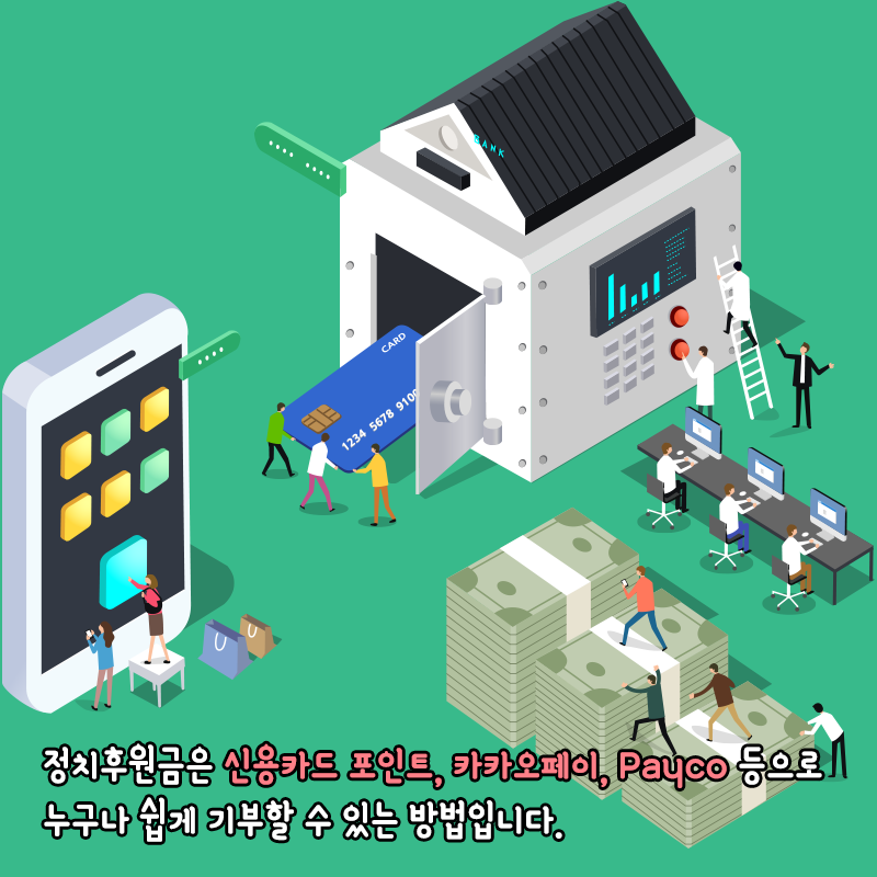정치후원금은 신용카드 포인트, 카카오페이, payco등으로 누구나 쉽게 기부할 수 있는 방법입니다.