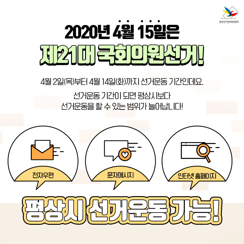 4월 2일(목)부터 4월 14일(화)까지는 선거운동 기간인데요.
