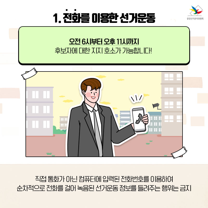 오전 6시부터 오후 11시까지 후보자에 대한 지지 호소가 가능합니다.