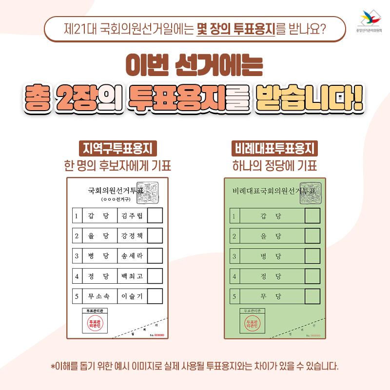 이번 선거에는 총 2장의 투표용지를 받습니다!