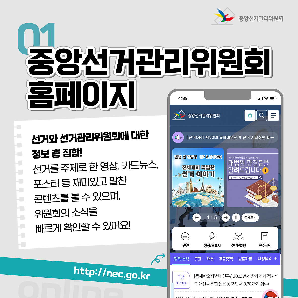 선거를 주제로 한 영상, 카드뉴스, 포스터 등 재미있고 알찬 콘텐츠를 볼 수 있으며,