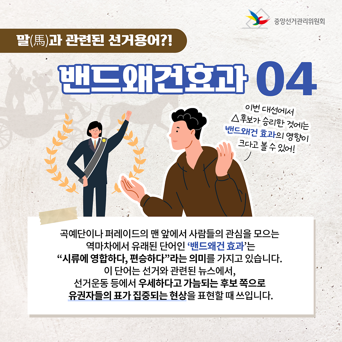 "이번 대선에서 ▲후보가 승리한 것에는 밴드왜건 효과의 영향이 크다고 볼 수 있어!"