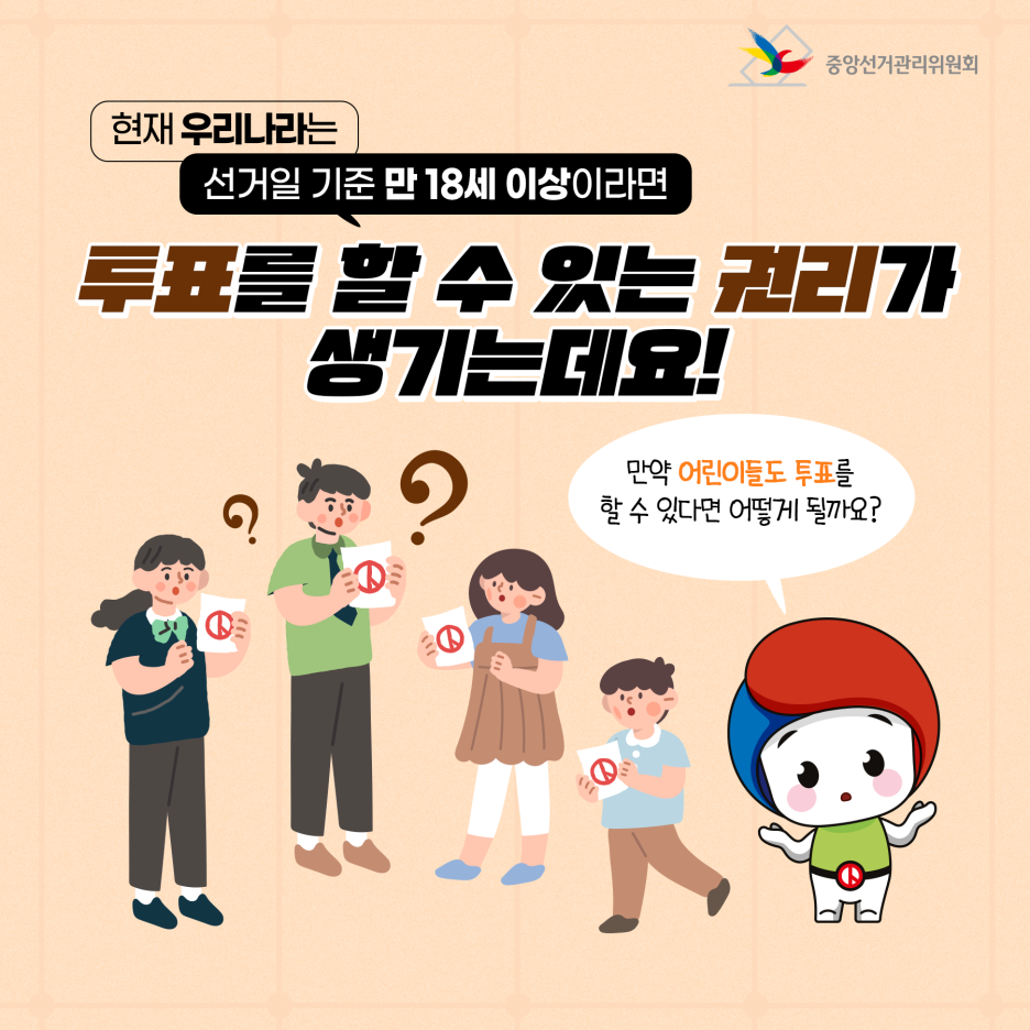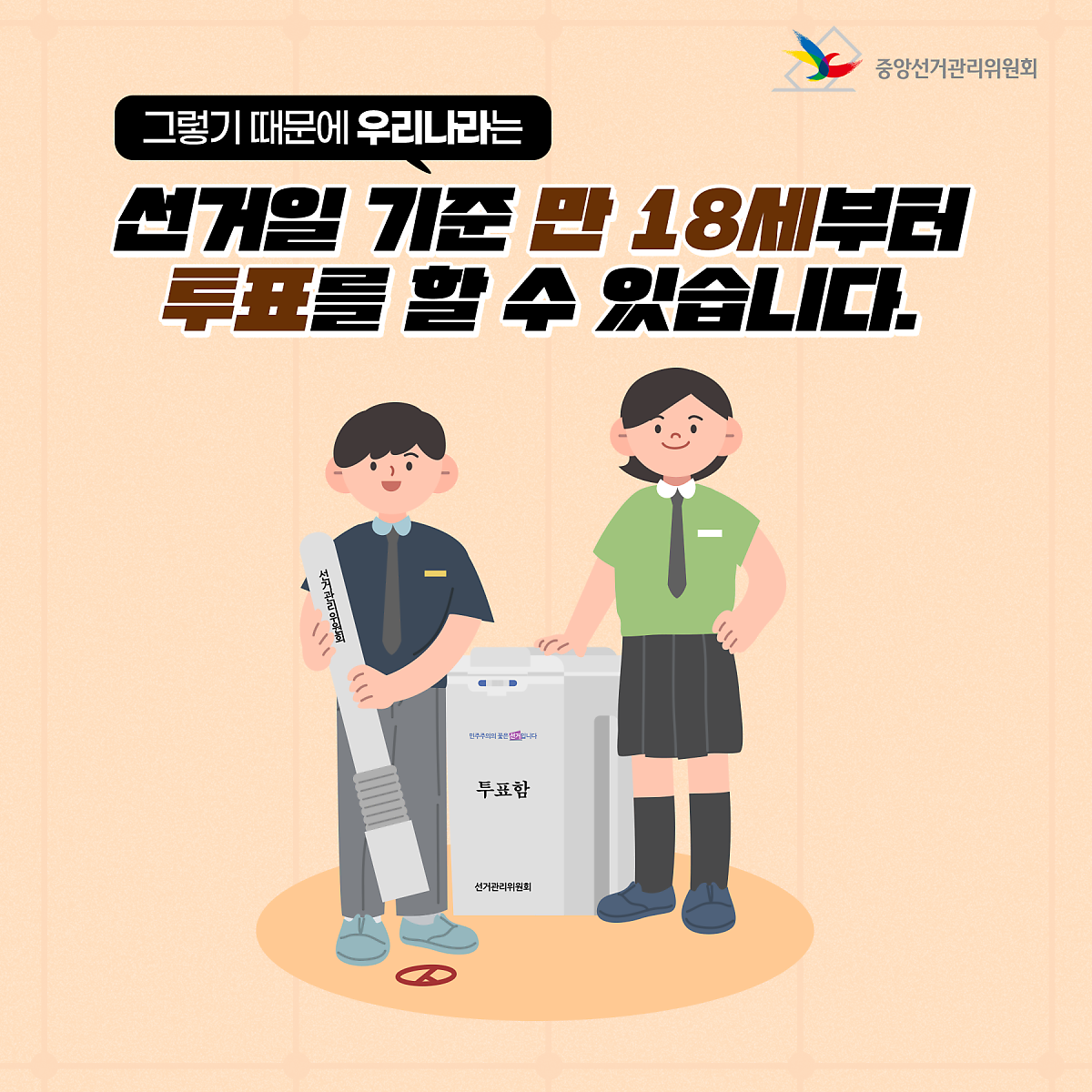 현재 우리나라는 선거일 기준 만 18세 이상이라면 투표를 할 수 있는 권리가 생기는데요!