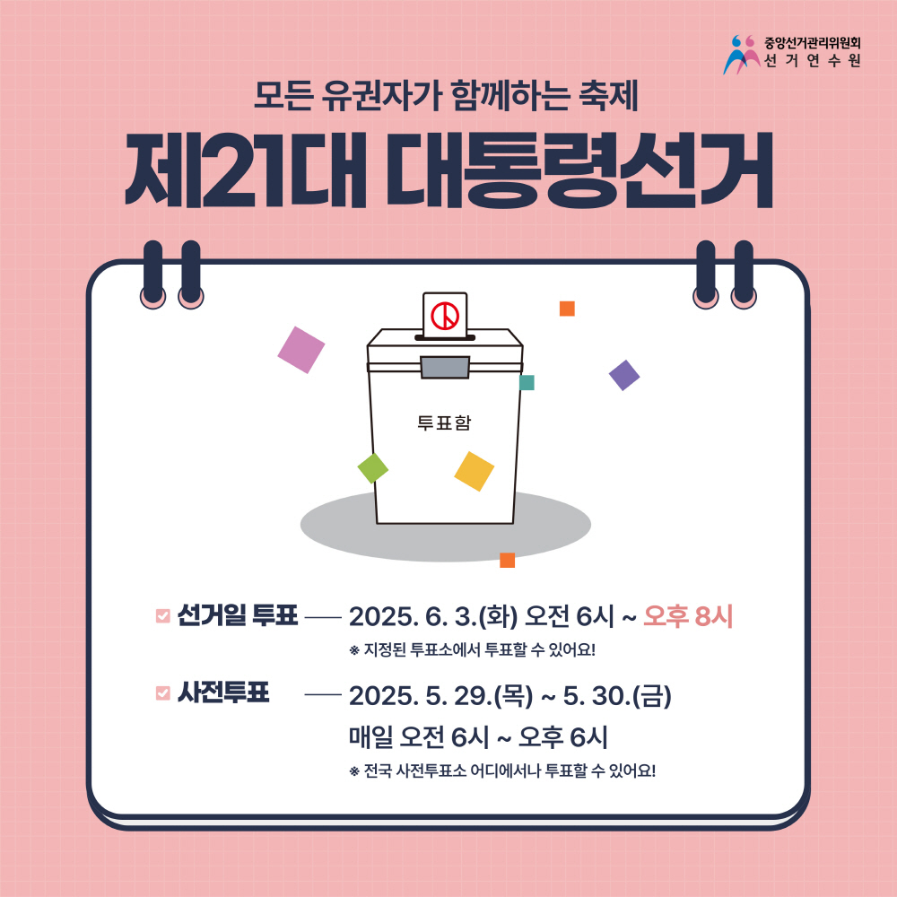 ○ 선거일 투표 : 2025. 6. 3.(화) 오전 6시 ~ 오후 8시