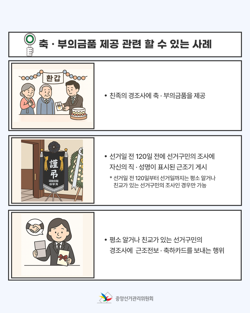 경조사의 축 · 부의금도 제한 · 금지됩니다.