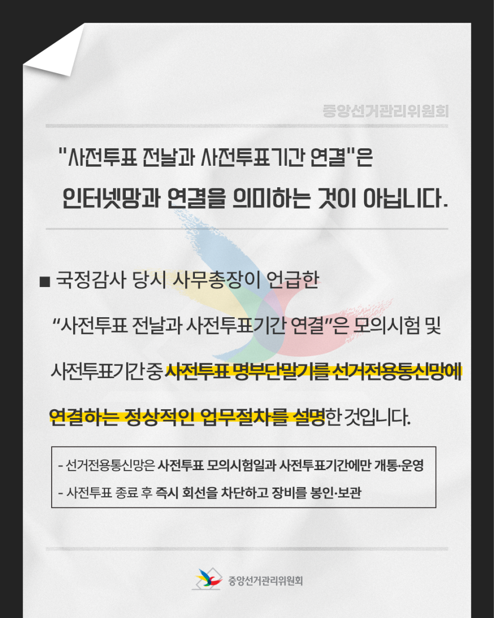 "사전투표 전날과 사전투표기간 연결"은 인터넷망과 연결을 의미하는 것이 아닙니다.
