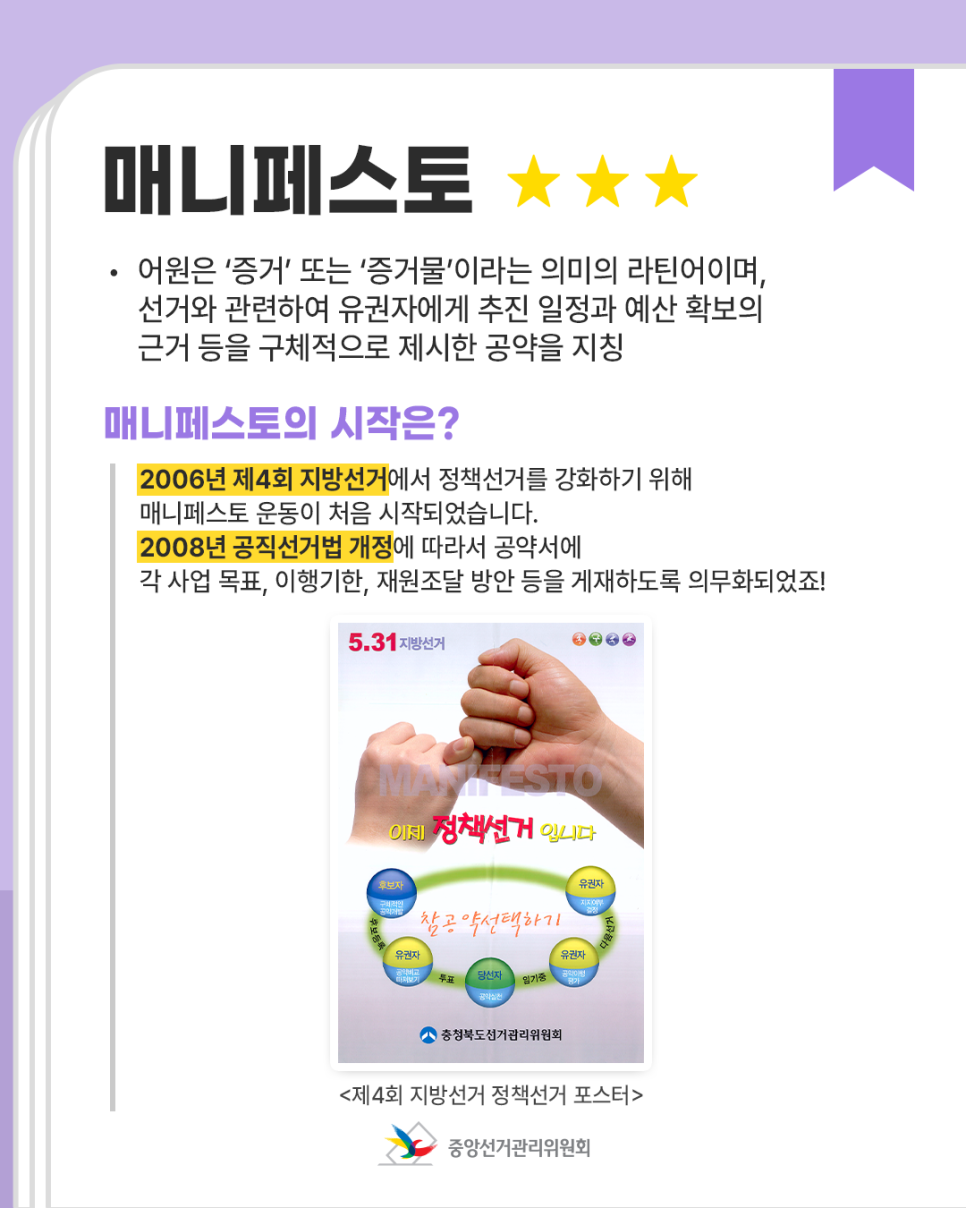 선거 용어 속 꿀팁! 오늘의 선거 용어, '매니페스토'