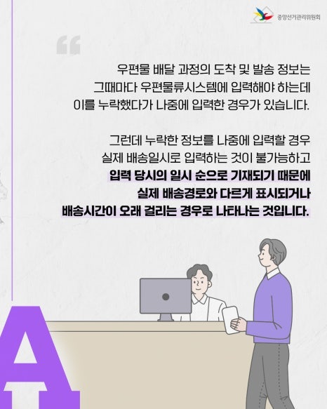 발송 또는 도착 상황의 입력을 뒤늦게 하는 등의