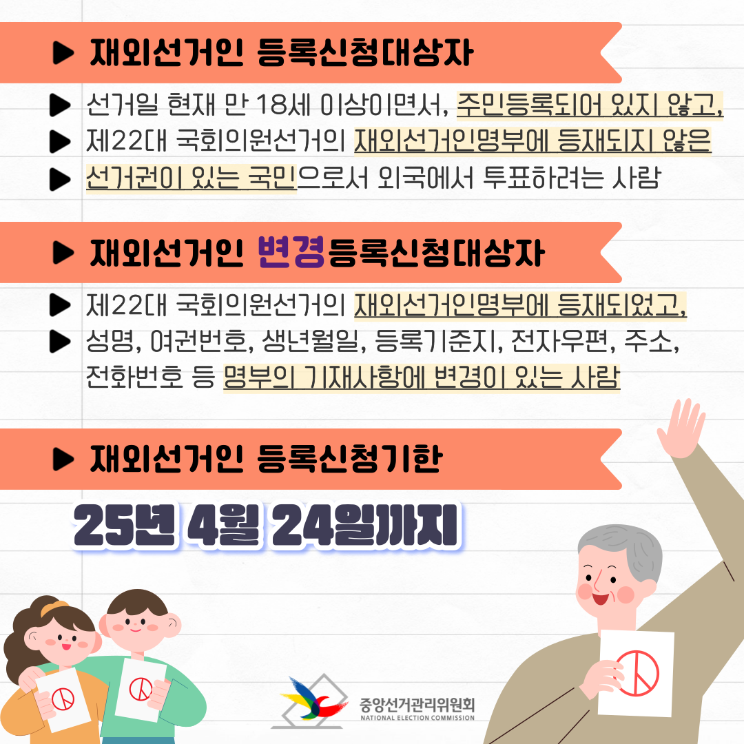 - 제22대 국회의원선거의 재외선거인명부에 등재되었고,