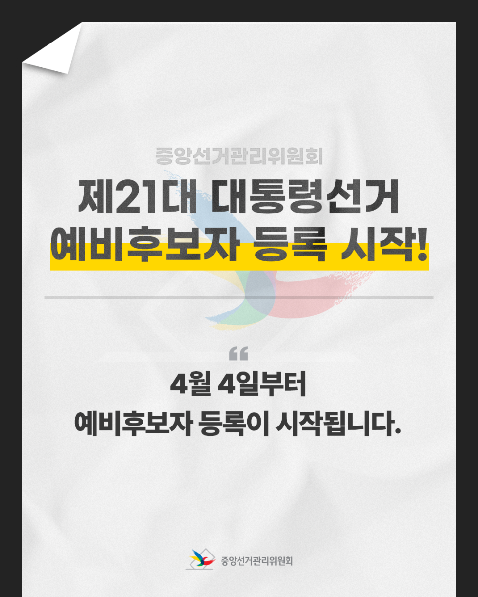 제21대 대통령선거 예비후보자 등록 시작!