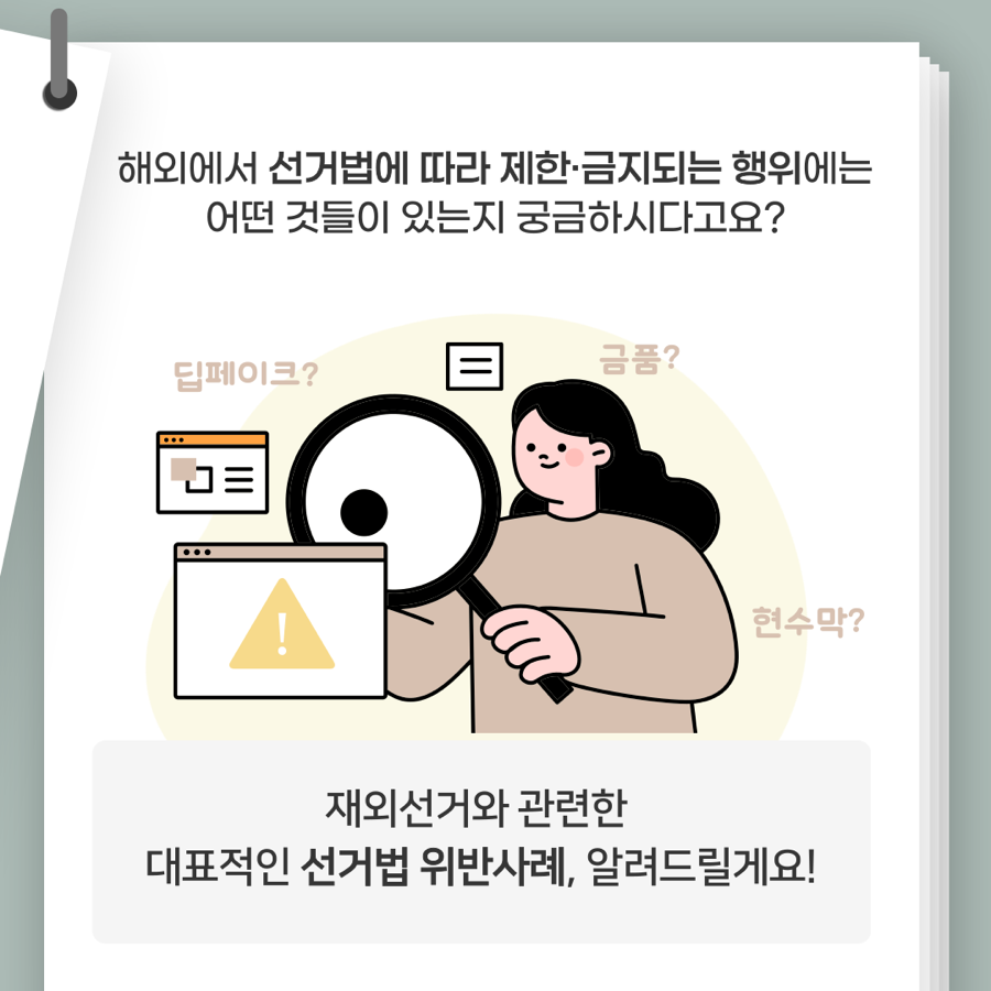 해외에서 선거법에 따라 제한•금지되는 행위에는 어떤 것들이 있는지 궁금하시다고요?